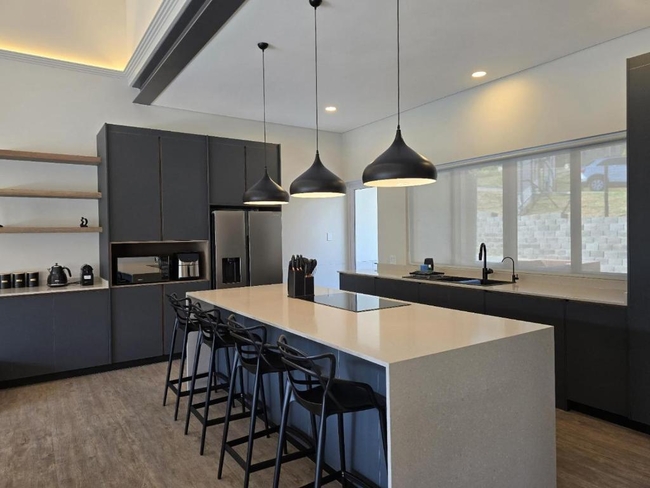 RidgeView comfortably accommodates up to six guests across three spacious bedrooms, each air-conditioned for comfort. Every room is furnished with a luxurious king-size bed and features its own en-suite bathroom, complete with a shower. High-quality linen and soft, fresh towels are thoughtfully provided to enhance your stay. The open-plan design of the living and dining spaces is both stylish and functional. The fully equipped kitchen includes a fridge-freezer, stove, oven, microwave, air fryer, and toaster, along with all the necessary utensils and tea and coffee-making facilities. A breakfast bar with stools offers a casual dining option, while the adjoining dining area, centered around a large 8-seater table, creates a welcoming space for shared meals. The lounge provides a comfortable seating arrangement, a large TV, and complimentary Wi-Fi, making it ideal for relaxation or socializing. Beyond the interiors, guests can enjoy a peaceful outdoor porch and the added convenience of secure undercover parking for two vehicles. RidgeView is ideally positioned for exploring the local area, with hiking and mountain biking trails nearby, along with a variety of restaurants, shops, and art galleries in the village.
