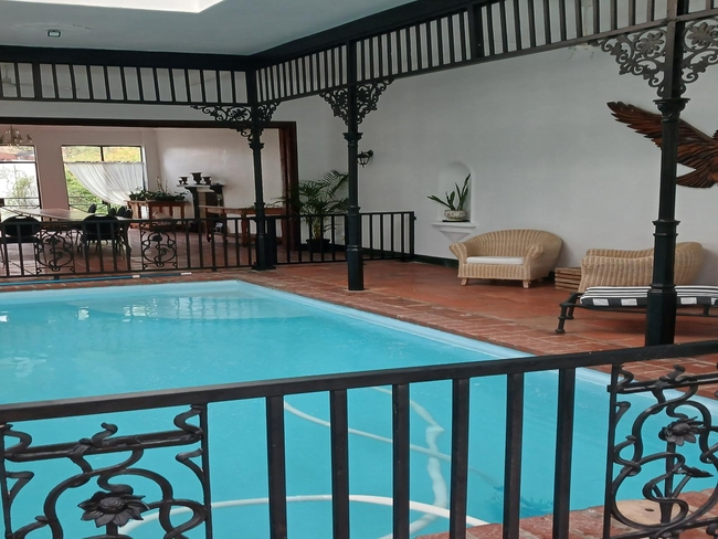 Superior Suite 29 has a luxury feel and is spacious, with views onto the front garden, pool and located above the Fountain Venue events hall. This room is separate from main house together with the other nine superior suites. The room is furnished with two three-quarter beds and the en-suite bathroom is equipped with a shower. Other facilities include a TV, bar fridge, air-conditioning, security with combination lock safe in the room.