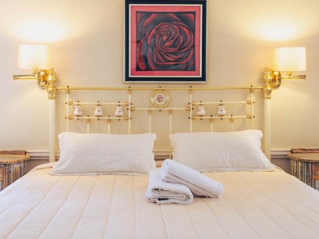 This is a Superior Style suite furnished with two three-quarter beds and the en-suite bathroom has a classic Victorian old Colonial style bath. View onto the back garden from the verandah. Other facilities include a TV, bar fridge, air-conditioning, security with combination lock safe in the room.