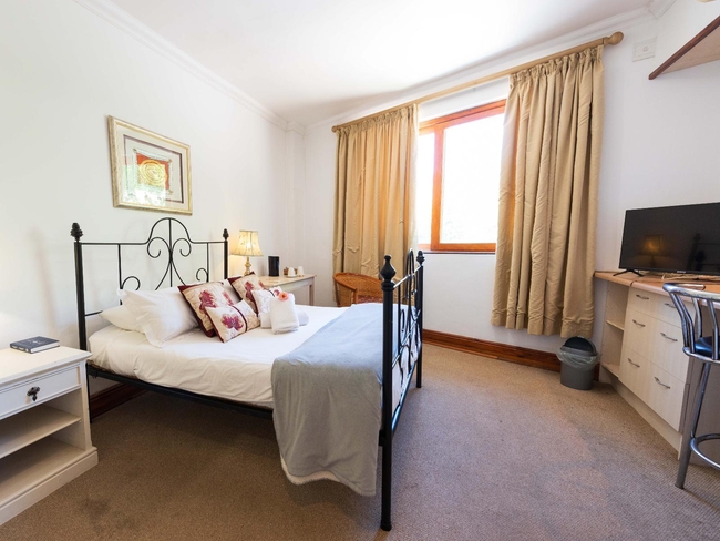This Superior Double Room is furnished with a double bed and the en-suite bathroom is equipped with a bath. There is a view onto the back garden. Other facilities include a TV, bar fridge, air-conditioning, security with combination lock safe in the room.