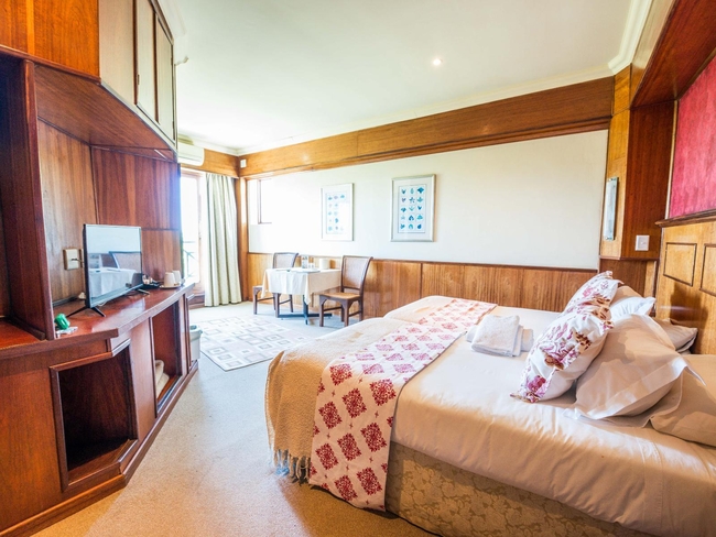 This Superior Double Room is furnished with a double bed and the en-suite bathroom is equipped with a bath. There is a view onto the garden from the verandah, sides and back. Other facilities include a TV, bar fridge, air-conditioning, security with combination lock safe in the room.