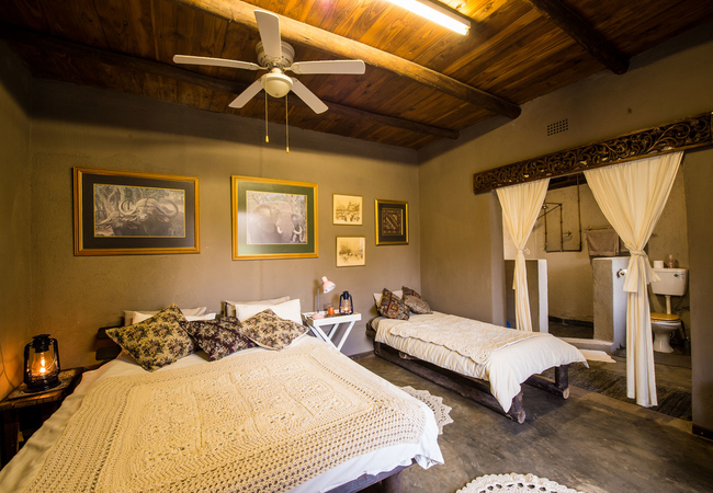 The Camp House is built of brick walls and has a thatched roof. There are six rooms and cottages, all of which are air conditioned and all have an en-suite bathroom.