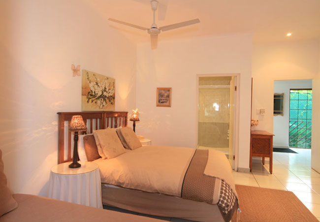 Double bed plus Single bed - en-suite Shower only. All rooms at Rivendell Bed and Breakfast have en-suite bathrooms and selected DStv and lead onto an enclosed courtyard that offers a secluded swimming pool and quiet garden ensuring peace and quiet for a perfect stay.