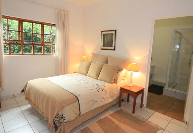 Double bed - en-suite Shower only. All rooms at Rivendell Bed and Breakfast have en-suite bathrooms and selected DStv and lead onto an enclosed courtyard that offers a secluded swimming pool and quiet garden ensuring peace and quiet for a perfect stay.