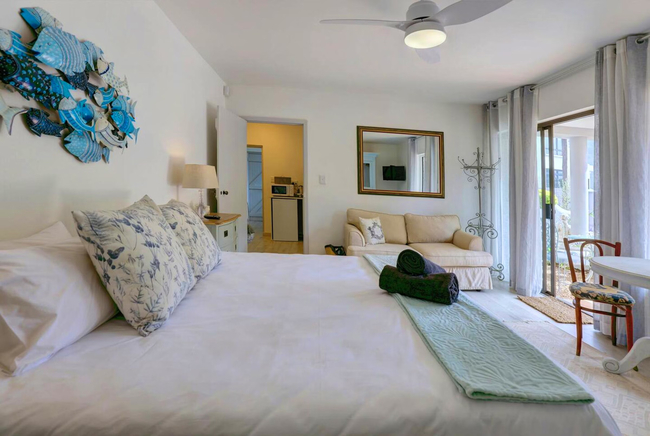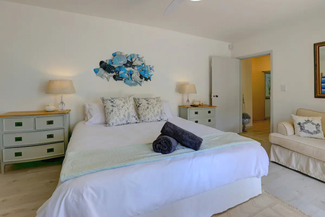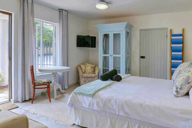 Riverbend One is a welcoming apartment situated on the ground floor of the owner’s residence in Wilderness, mere steps from the scenic lagoon. This accommodation is well-suited for both leisure and business guests. With a private entrance, the apartment accommodates up to two guests. It includes a separate bedroom featuring a comfortable king-size bed and an en-suite bathroom with a shower. High-quality linen and plush bath towels are provided to enhance your stay. The kitchenette offers essentials such as a microwave, toaster, bar fridge, and a full selection of cutlery, crockery, and tea- and coffee-making facilities. Entertainment options include a TV with DStv channels and complimentary Wi-Fi access. Outside, guests can unwind in the lovely garden area with outdoor seating, perfect for relaxing after a day of exploration. Secure on-site parking is available, adding to the convenience. The surrounding area presents a variety of activities, from hiking and kayaking to paragliding along the Garden Route, surfing, fishing, and relaxing on beautiful beaches.