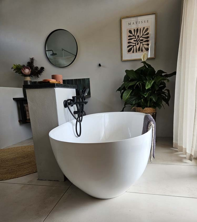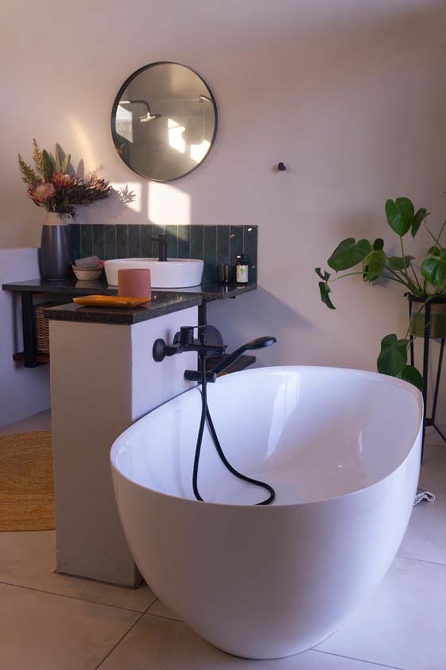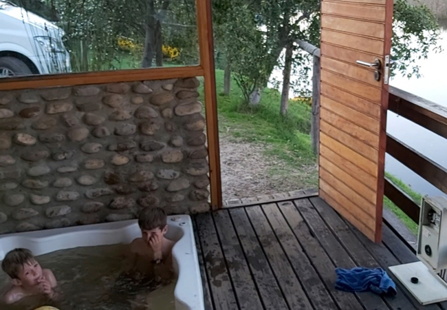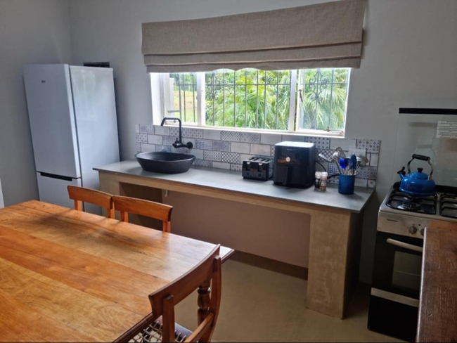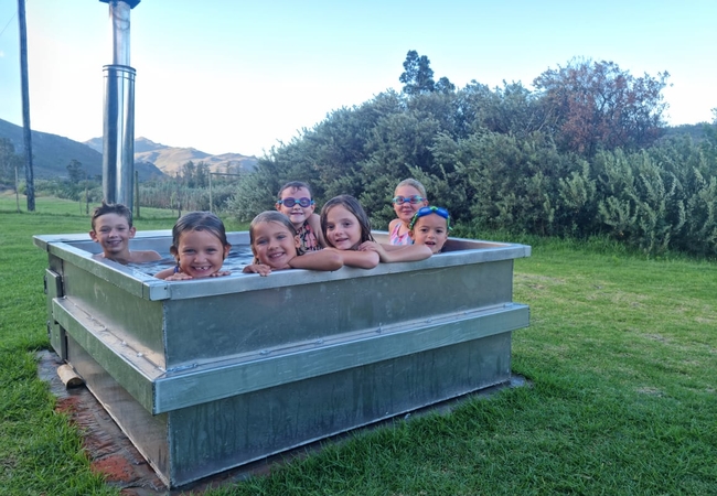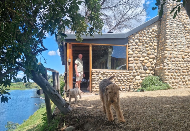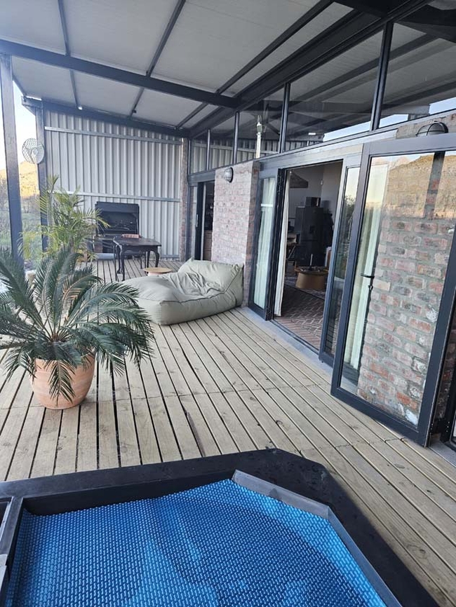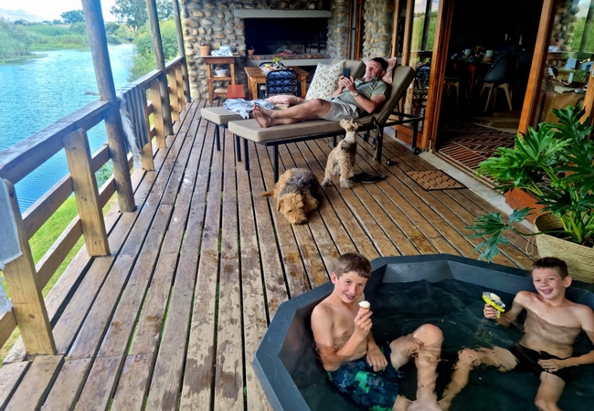 Jan Albert House consists of an open plan bedroom, kitchen and sitting area with a king size bed, separate bath and separate shower. Undercover braai, pizza braai on the balcony with a hot tub and loungers to relax and views of the river and our beautiful mountain range.