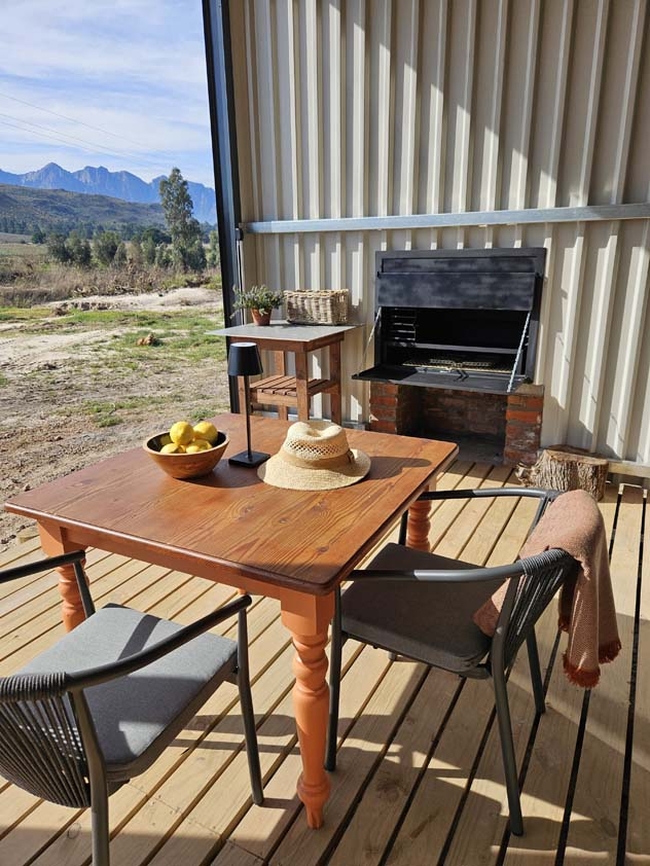 The 5th house is called Coetzer. A great idea is to book all the houses for your birthday and have the party on Coetzer house's deck. Maybe attach a bedou én tent? Remember to ask us for a quote for your catering