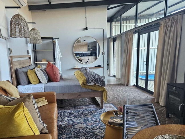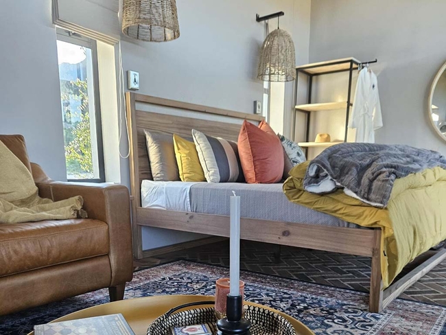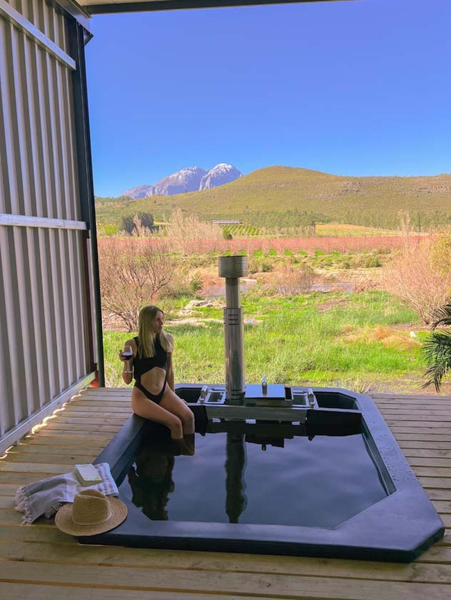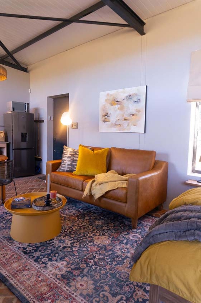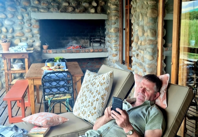Joubert House is suited for two guests in an open plan bedroom, kitchen and sitting area with a King size bed, separate bath and separate shower. Undercover braai, pizza braai on the balcony with a hot tub and loungers to relax and views of the river and our beautiful mountain range.