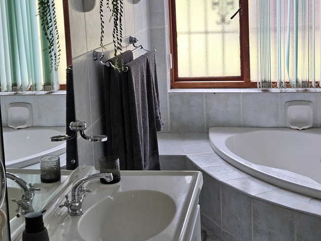 Country Manor House is a spacious four bedroom house of which 1 bedroom has a queen bed and equipped with an en suite bathroom containing a separate bath and shower, toilet and wash basin. The other three bedrooms are fitted with queen beds. An additional bathroom is available with a shower over the bath, toilet and wash basin. There is a large living area with a fireplace, as well as a dining area. Contains a separate fully equipped kitchen and included guests will find tea/coffee facilities, fridge, microwave, oven, toaster and dishwasher for convenience. Outdoor dining area as well as braai facilities and a wood fired hot tub.