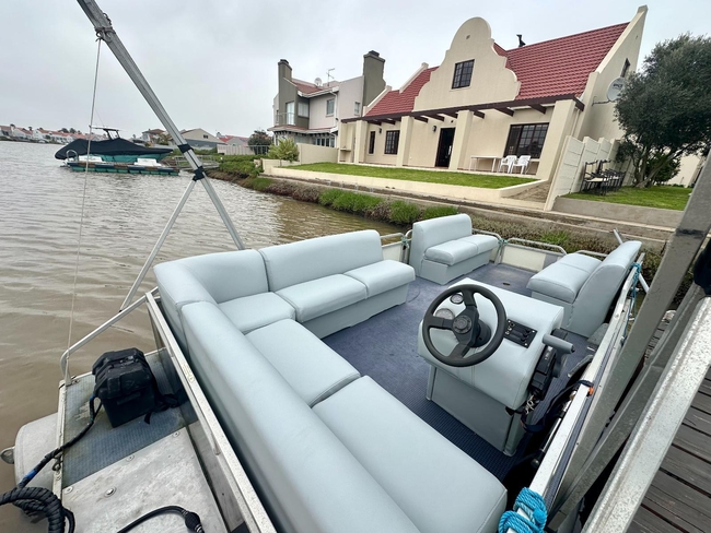The villa offers four thoughtfully designed bedrooms and two bathrooms. The main bedroom features a king-size bed, while the second includes a queen-size bed. The third bedroom is equipped with two three-quarter beds, and the fourth provides three three-quarter beds. Both bathrooms are tastefully appointed with a shower, basin, and toilet to ensure comfort for all guests. The fully equipped kitchen caters to every culinary need, complete with a stove, oven, fridge-freezer, microwave, and a full range of cutlery and crockery. The inviting living area is designed for comfort and convenience, featuring a dining table, cozy fireplace, plush seating, a television, and access to Wi-Fi for seamless connectivity. The spacious patio, equipped with an outdoor braai, offers a delightful spot to unwind while soaking in the picturesque surroundings. The lush lawn extends directly to the water’s edge, providing ample space for leisure and family gatherings. A stone pathway from the patio leads to the villa’s private boat jetty, offering effortless access to boating, fishing, and swimming activities. Guests with a skipper’s license can rent a boat for further exploration, while complimentary kayaks and paddleboards invite guests to explore the serene waterways right from the property’s edge.