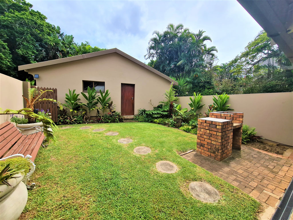 The lounge opens out onto a small patio area. Where guests enter the property there is an enclosed courtyard area, with patio table and gas braai for guest use. This courtyard area is perfect if wanting to bring along two small dogs.