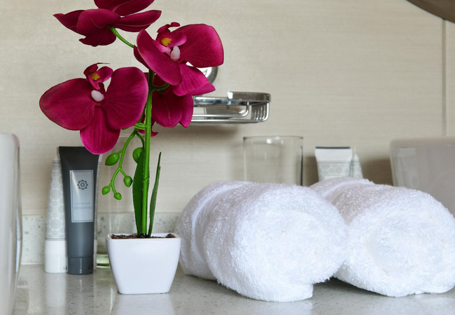 The Executive Suite is furnished with a double bed and is slightly bigger than the rest of the rooms. The en-suite bathroom is fitted with a bath, shower, toilet and basin. Room facilities include air conditioning, TV with satellite channels and Wi-Fi. The suite has a balcony with amazing views.