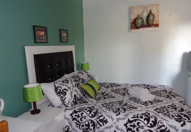 Room has a private entrance, with en-suite shower. Equipped with a TV, bar fridge, fan, heater, digital safe, mink blankets, tea/coffee facilities, bedside lamp, extra chair and a wardrobe for guests. Rooms has a three-quarter bed.