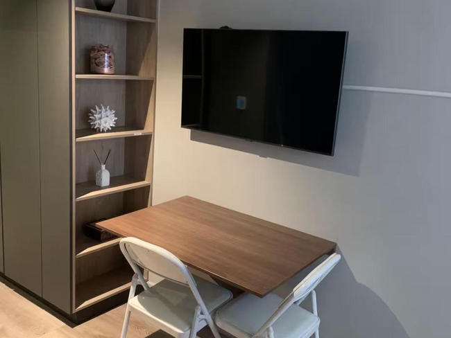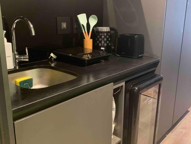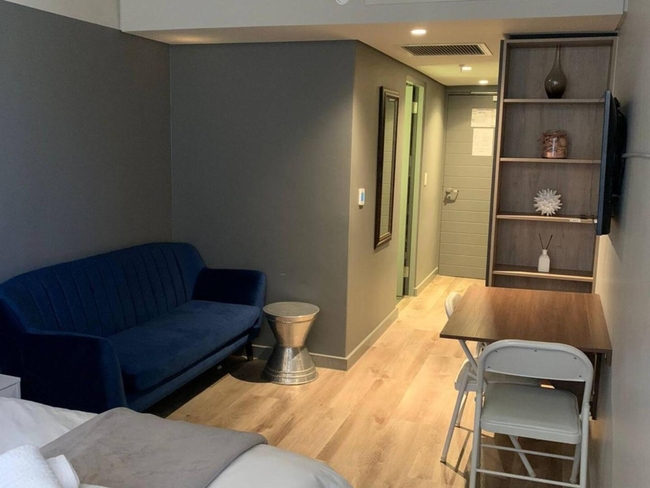 The studio apartment is designed with both comfort and functionality in mind. It includes a plush queen-size bed, an en-suite bathroom with a walk-in shower, and a compact yet well-equipped kitchenette.