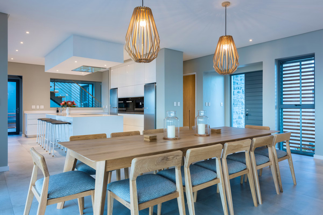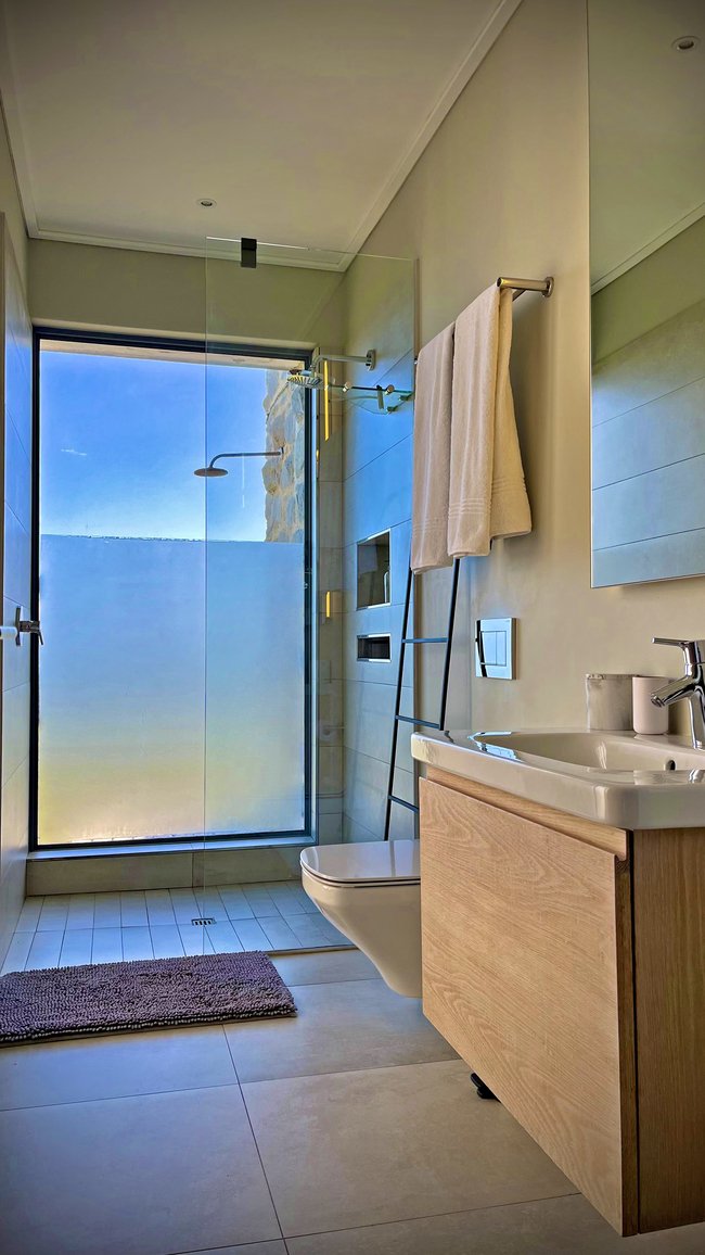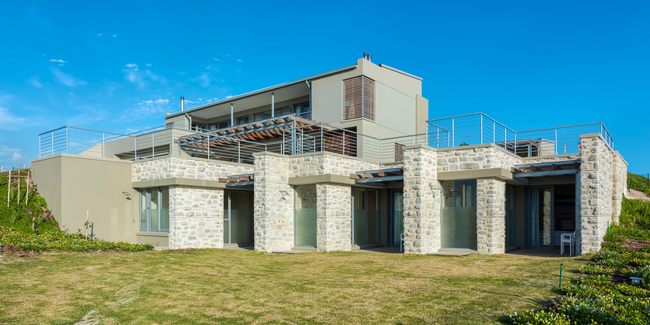 Situated on the Cape Whale Coast, Boutique Guest House is a beachfront guest house within the secure gated Romansbaai Beach & Fynbos Estate in Gansbaai in the Western Cape. The north facing, summer wind-protected Kevin Gadd designed house is of generous proportions and is constructed over 3 levels.