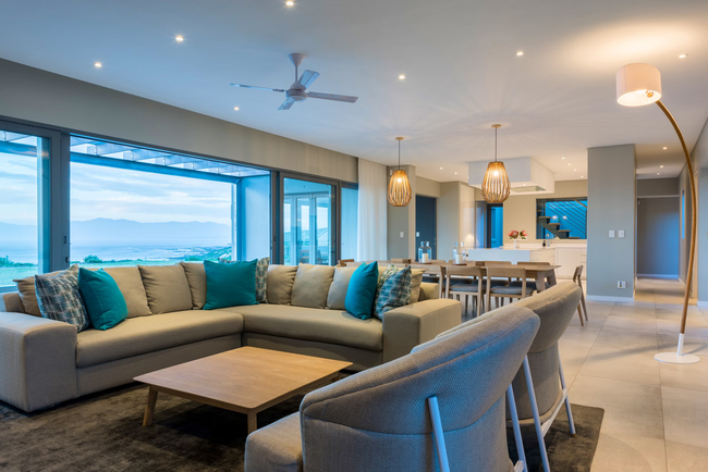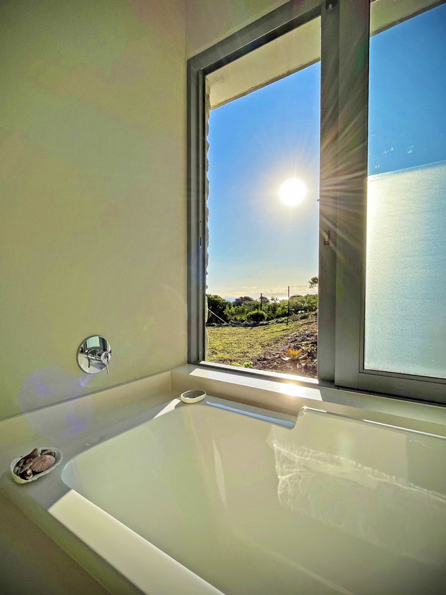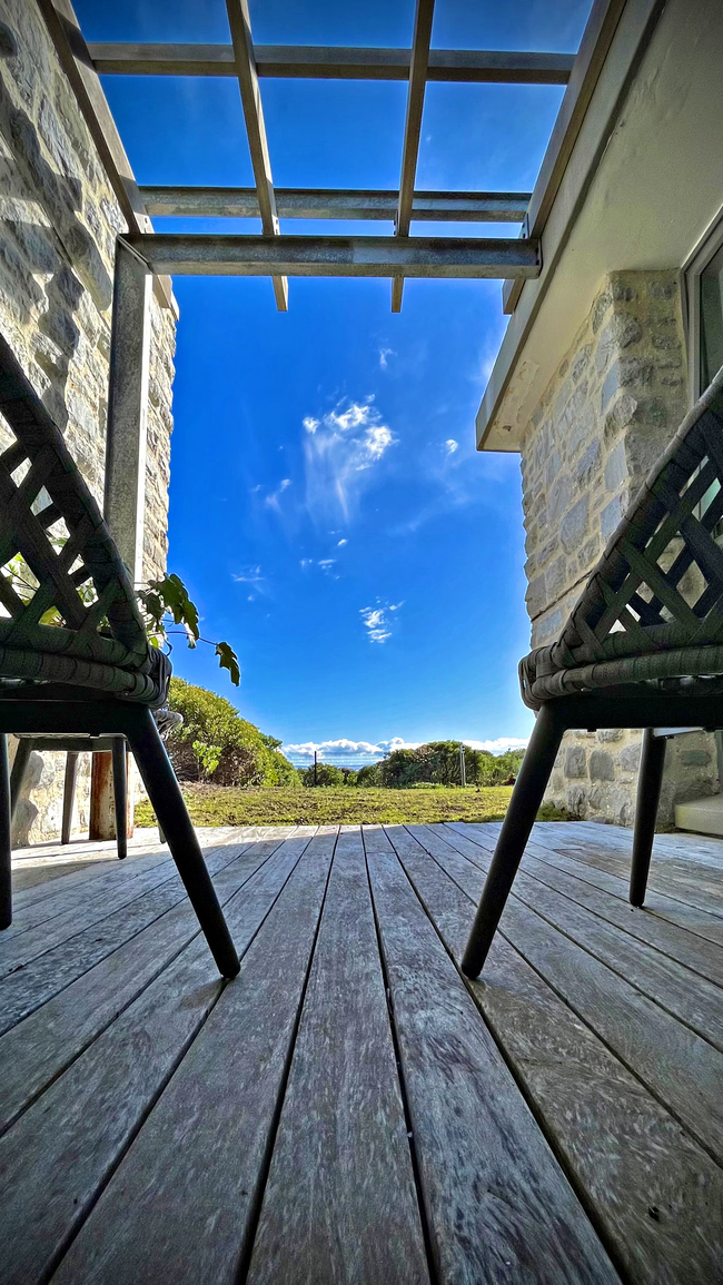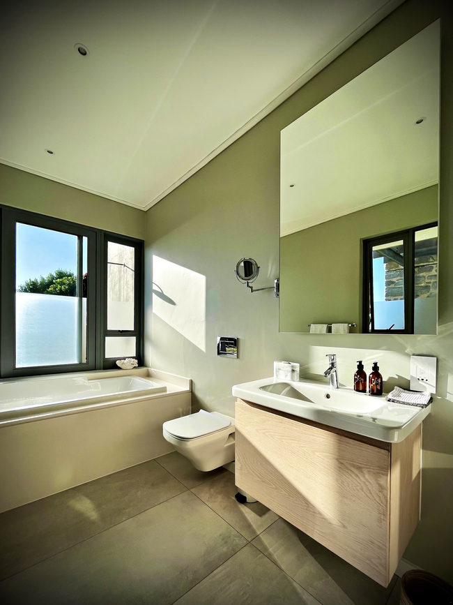 Suite with two single beds, en-suite bathroom (shower) and a private veranda with ocean views. The rooms all have a desk, hair dryer and en-suite bathroom. The guest living and dining area have an Italian fireplace and flat screen satellite TV. This area opens up onto the deck leading directly to the swimming pool. Off Street parking is provided.