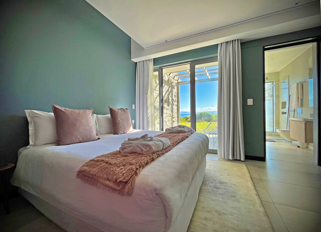 Suite with a king size bed, en-suite bathroom (shower and bath) and a private veranda with ocean views. The rooms all have a desk, hair dryer and en-suite bathroom. The guest living and dining area have an Italian fireplace and flat screen satellite TV. This area opens up onto the deck leading directly to the swimming pool. Off Street parking is provided.