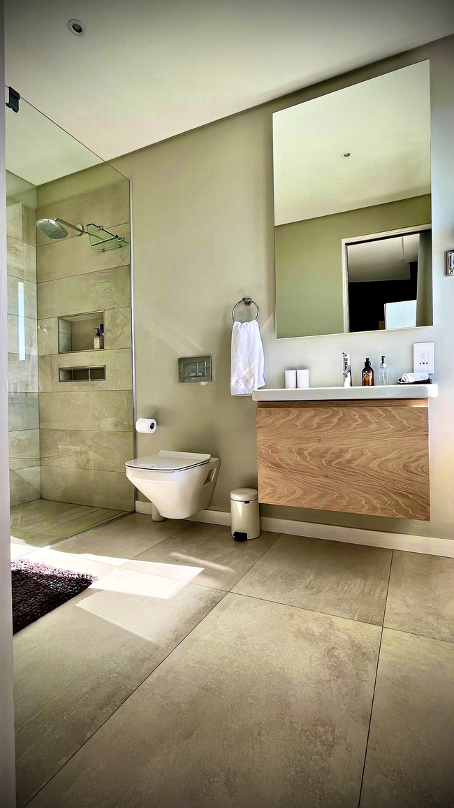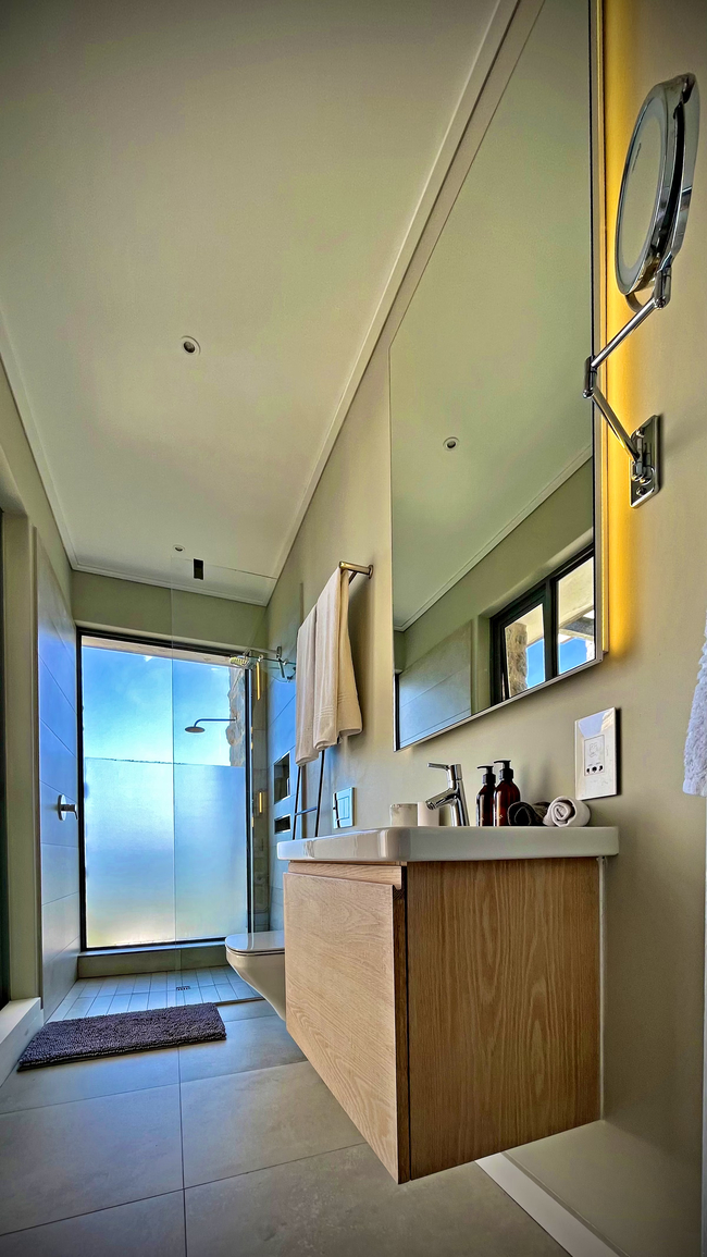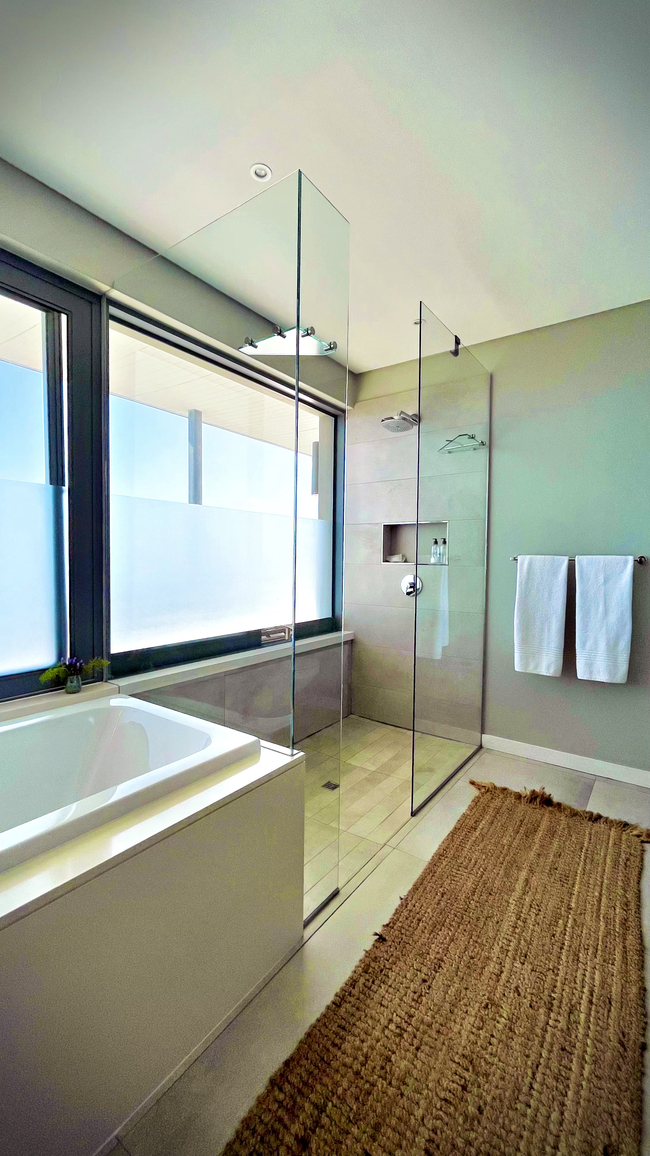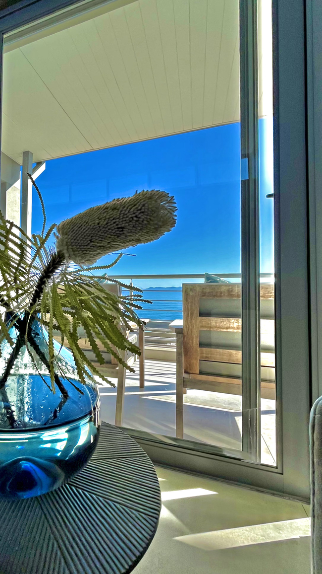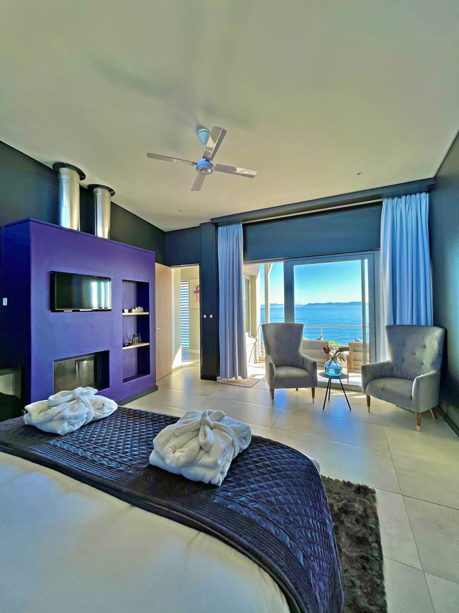 Suite with a king size bed, en-suite bathroom (shower) and a private veranda with ocean views. The rooms all have a desk, hair dryer and en-suite bathroom. The guest living and dining area have an Italian fireplace and flat screen satellite TV. This area opens up onto the deck leading directly to the swimming pool. Off Street parking is provided.