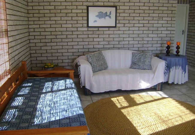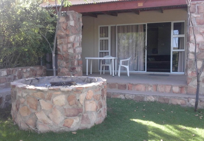 Two bedroom self-catering units.One room with double or Queen-size bed and one room with twin beds. There is a single sleeper in the lounge. The kitchen is fully equipped and the patio has a braai area. We provide bedding but not towels. This unit has no inside fire place.