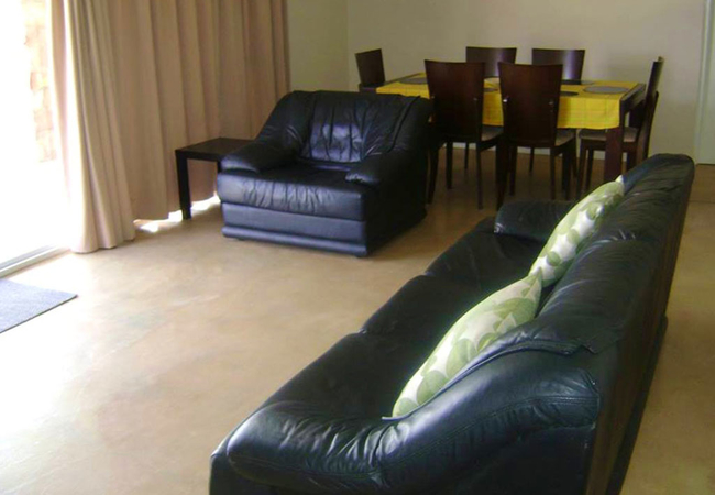 Three bedrooms and two bathrooms. Two rooms with double beds and one with two twin beds.This unit has an inside fire place. One unit has a queen size bed and two rooms with twin beds-no fire place. The 7-sleeper cottage can accommodate up to a maximum of 6 adults and 1 child under 12-years old. All of the cottages have outside braai's and indoor fireplaces. The living areas open up onto shaded patios.
