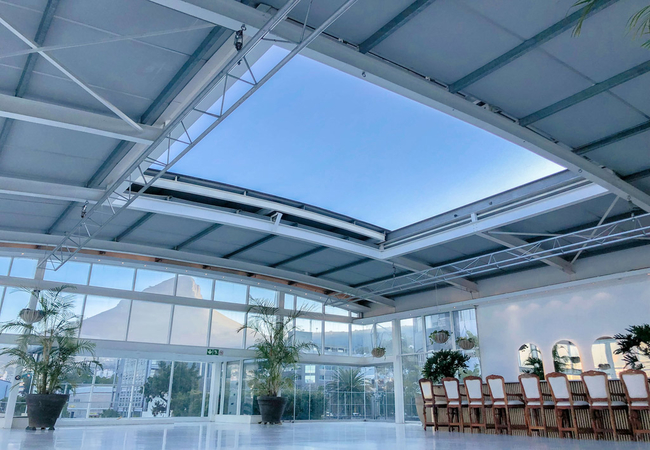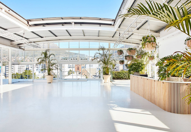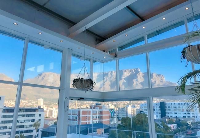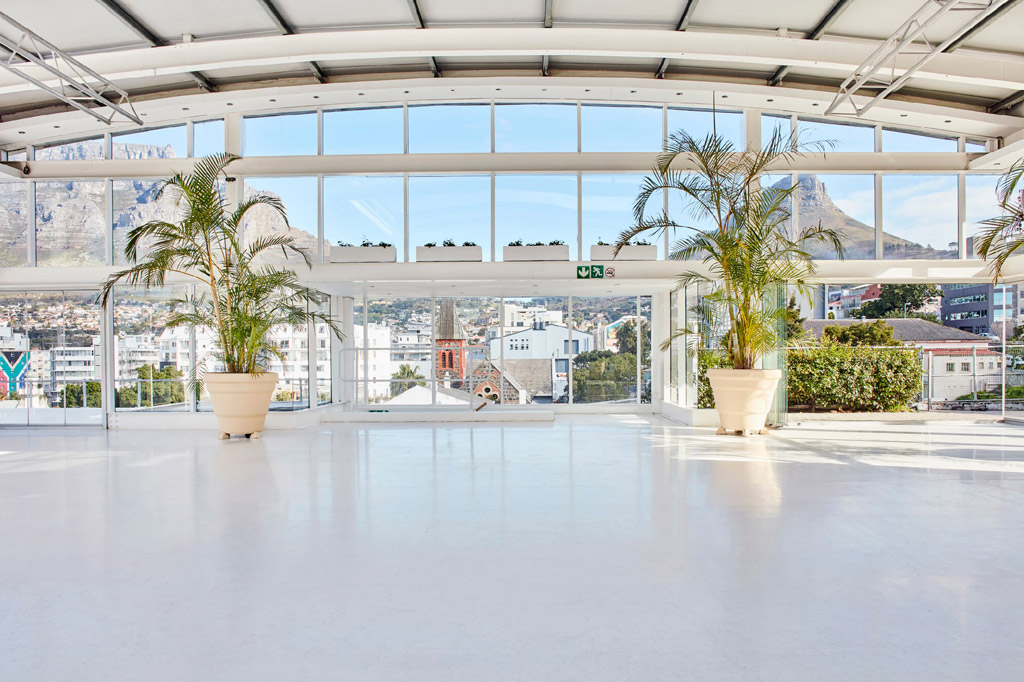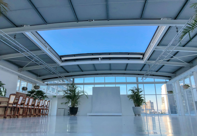 Situated on the rooftop of a commercial building in Bree Street, our venue has immense views of Cape Town's city skyline and mountains. We are centrally located, and easily accessible for most of Cape Town. We have a large balcony for your guests to enjoy the sunset scenes, and a highlight of the venue is a retractable skylight roof. The roof opens at the click of a button, and the venue is instantly alive with daylight or lit up by the stars at night.