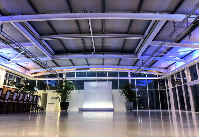 The space was previously a full-time daylight photography studio. We do still offer daylight photography and the space features a large infinity wall that can be used for photography. Natural light photography is possible with the roof open, and glass walls around the entire venue.