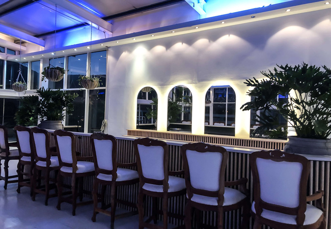 Our outdoor deck and balcony measure 150m2 and our indoor covered space is 250m2. The space has a gorgeous built-in bar, with intricate wooden details and fully stocked drinks and glassware. The bar at the venue is fully-functional and ready to serve your guests a variety of delicious drinks and cocktails. We also have a large back-of-house area that is suitable for kitchen and catering operations. We have a variety of recommended suppliers for food.