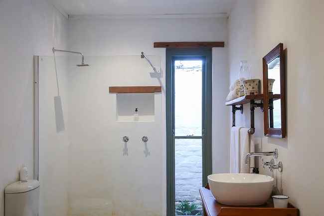 Rooster Cootage is spacious and boasts stylish antique finishes. The bedroom is furnished with a double bed and the bathroom is fitted with a bath, toilet and basin and there is an outside shower.