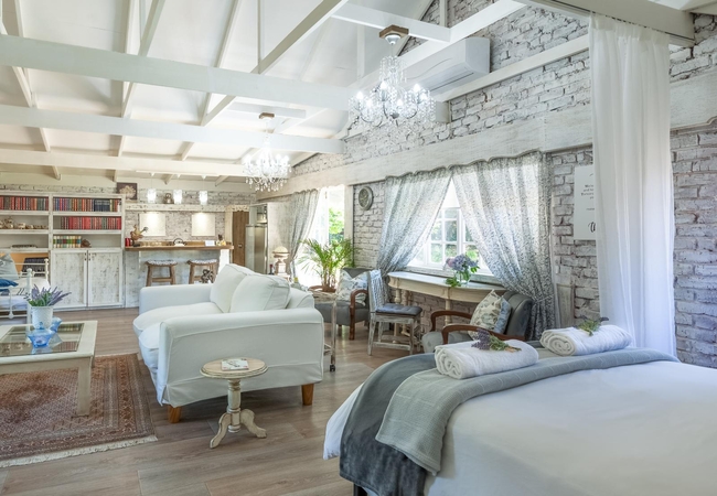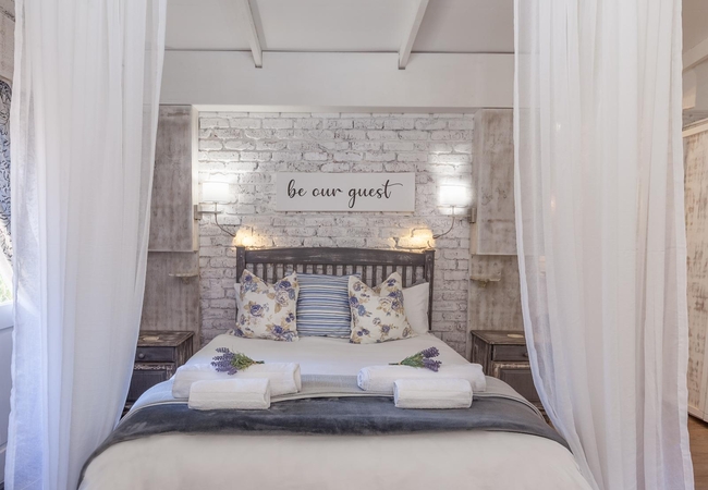 Lavender Cottage has one bedroom furnished with a Queen-size bed and a sleeper couch for two children. There is a bathroom fitted with a shower over the bath, toilet and basin. This unit has a fully equipped kitchen for guests convenience.