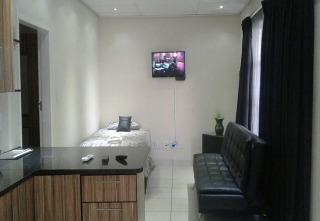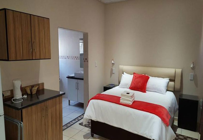 These rooms each have a double bed with en-suite bathrooms. It has a fan, heater, microwave, fridge and cutlery for 2, TV with dish and free wi-fi.Facilities in these rooms include Bar Fridge Fan Heater TV MNET Satellite TV Internet Ready No Smoking Tea and Coffee Fully Equipped Bed Linen supplied Towels Microwave Freezer.
