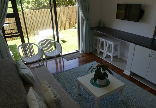 This unit sleeps four to six guests in two separate bedrooms. The main room has a Queen-size bed and the second room has two single beds. There is also a sleeper couch in the lounge. There is one bathroom just off the main bedroom with a shower. All linen and towels (except beach towels) are provided.