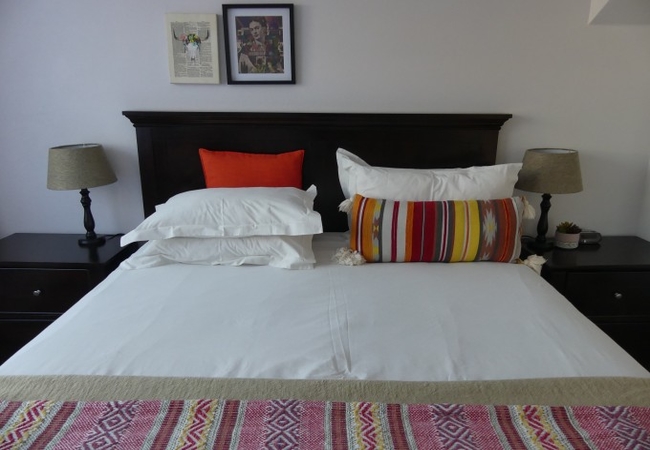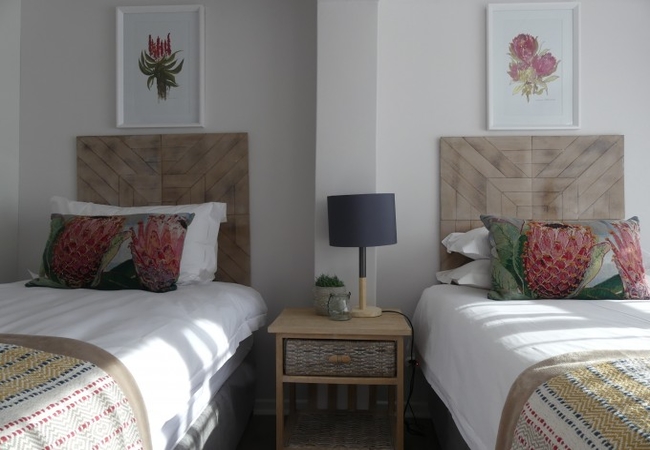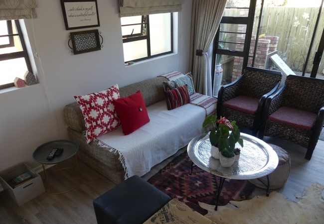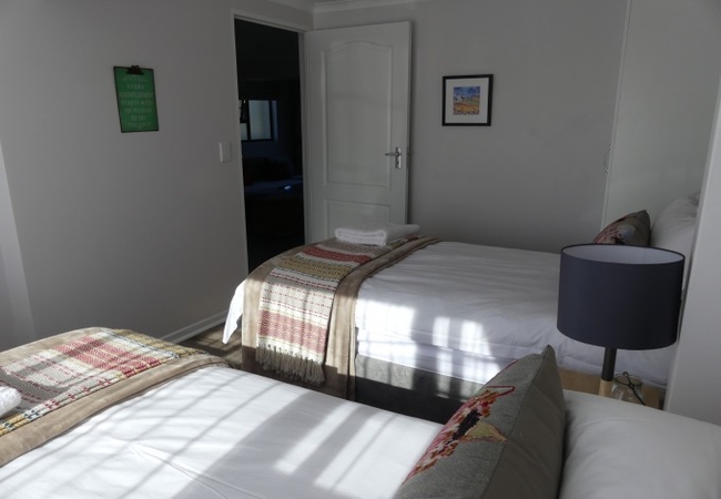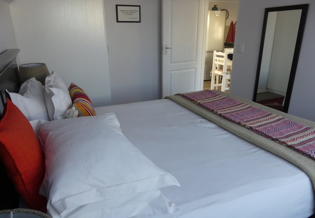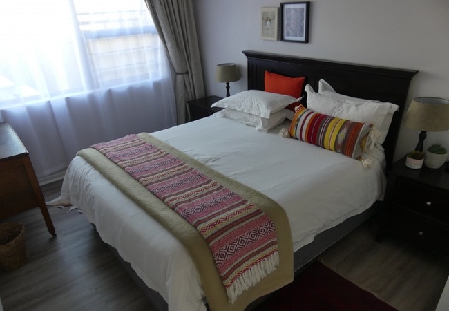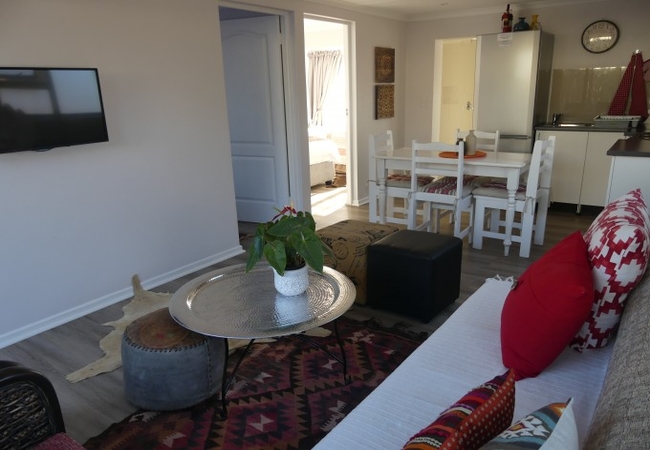 Aztec Room: This ground floor unit sleeps four to six guests in two separate bedrooms. The main room has a Queen-size bed and the second room has two single beds. There is also a sleeper couch in the lounge. There is one bathroom with a shower. The unit has a fully equipped kitchenette, a dining table and a TV with DStv (hotel package), Mnet and Supersport. There is parking for one vehicle.