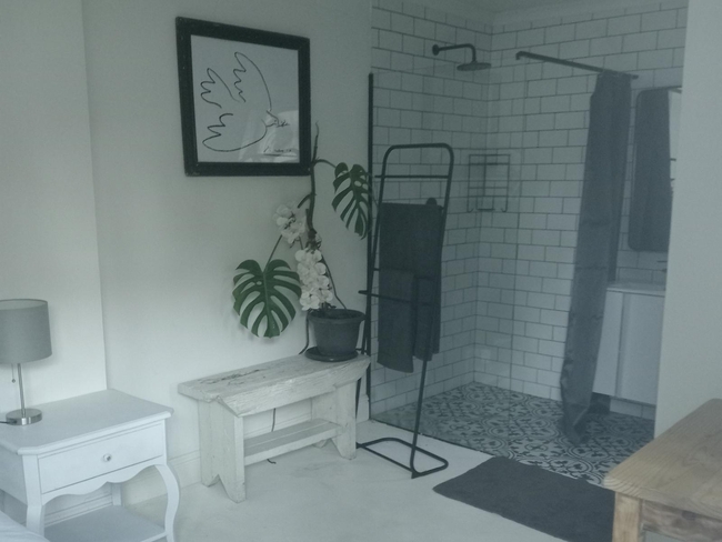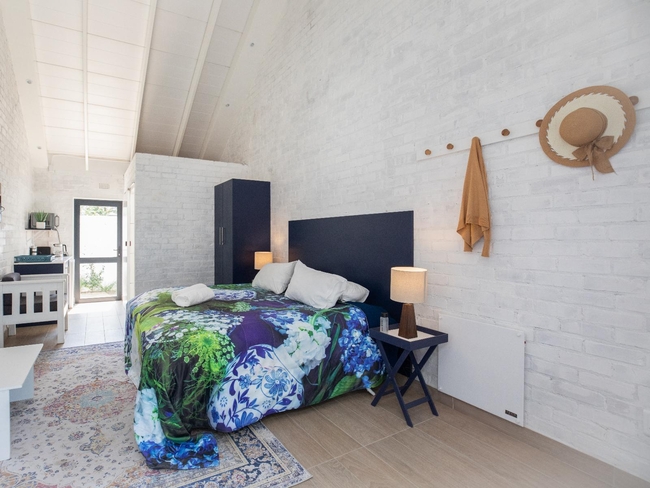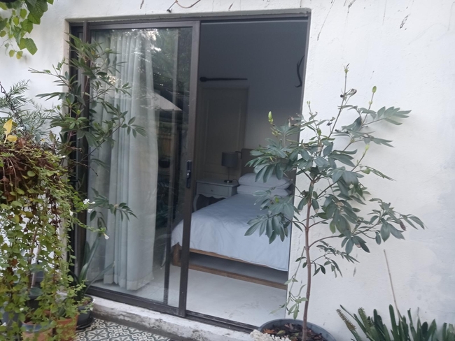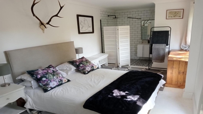 This room is furnished with a double bed or two single beds. Each room has a sliding door giving access to garden outside. There is an en-suite bathroom. Guests have access to a communal breakfast / TV room and an under cover braai area.