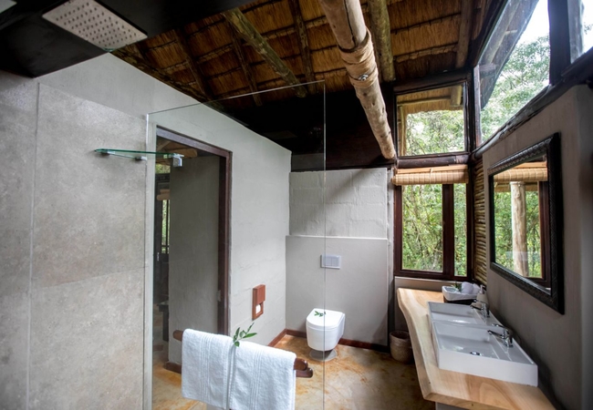 The chalets are all individually situated and are partially hidden by the surrounding sand forest and overhanging thatched roofs. Interiors are cool and shady while the covered verandas provide respite from the African sun.