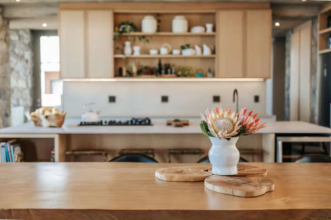 The open-plan kitchen, dining, and living areas are designed to maximize the breathtaking scenery with expansive windows and doors. The kitchen is fully equipped to meet all your self-catering needs.