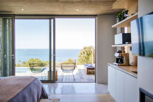 This exquisite residence boasts three bedrooms, each furnished with king-size beds, fireplaces, and en-suite bathrooms. The sliding doors in each room open onto either the balcony or the pool deck, featuring outdoor seating that perfectly frames the stunning sea views. The open-plan kitchen, dining, and living areas are designed to maximize the breathtaking scenery with expansive windows and doors. The kitchen is fully equipped to meet all your self-catering needs. The dining area includes a large 10-seater table, while the cosy living room offers two lounging areas, one complete with a fireplace. Outside, a beautiful deck with a swimming pool provides the perfect spot for relaxation. Monate Eco Estate is an exclusive, private residential community with access-controlled entry to ensure utmost security and peace of mind. The estate is home to exquisite Cape Fynbos and offers excellent nature hiking paths. Residents can enjoy direct access to Cape Nature or take a leisurely 1100-meter walk to Haroldsbaai Beach.