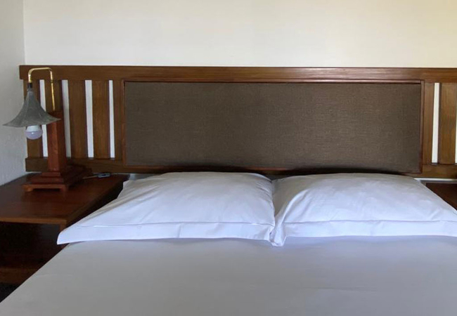 One bedroom with a double bed and three single beds in the living area. There is a single bathroom with a shower over the bath, an open-plan living area with a well-equipped kitchenette, a braai area and parking. Two of these chalets have a separate shower and two has a shower over the bath. These chalets are located in the front row and offers beautiful views from the Veranda. Please bring your own towels and cleaning products. Service on request at an addtional fee per day. Features: Double + single beds, Self-catering, Garden views, Fan, Veranda.