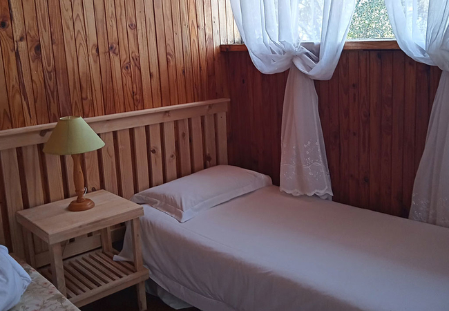 One bedroom furnished with a double bed and a single bed. There are three single beds in the living area. There is a single bathroom fitted with a shower over the bath. Two of these chalets have a separate shower and the other chalets have a shower over the bath. There is an open-plan living area with a well-equipped kitchenette, a braai area and parking. All have veranda's, some of them are located in the front row offering beautiful views over the valley. Please bring your own towels, dishcloths and cleaning products. Chalet service available on request at an additional fee.