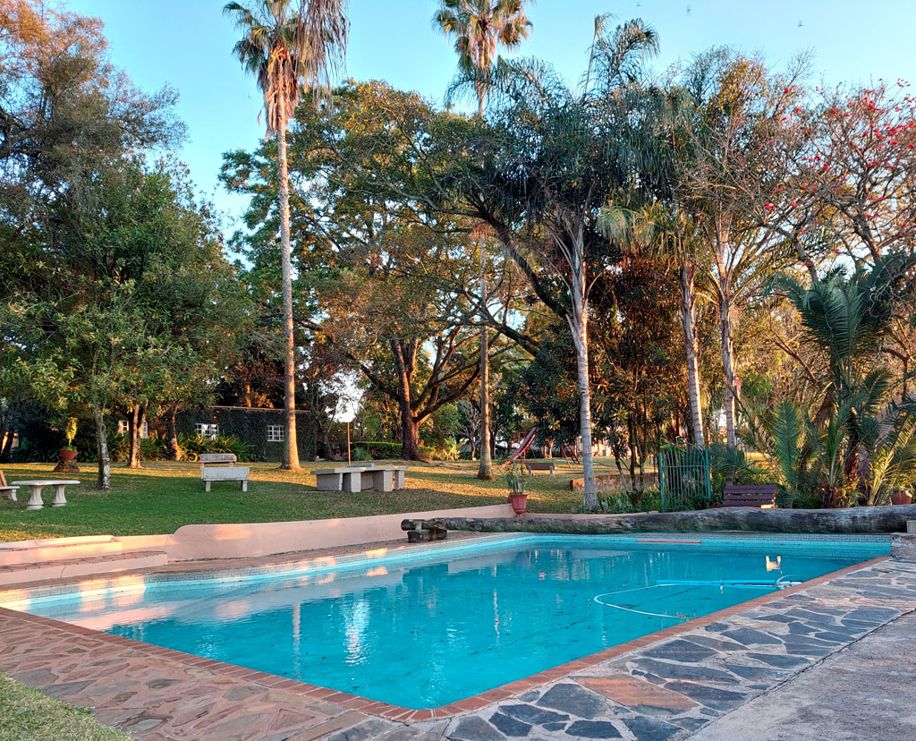 On offer are 22 fully contained self-catering chalets (not upmarket but homely), each with a private braai area and parking for one vehicle. Please bring your own bath and swimming towels.