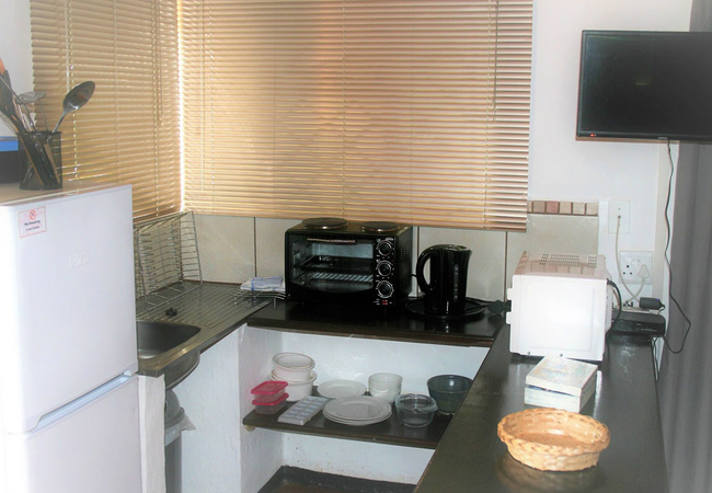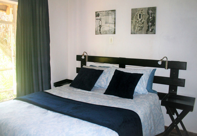The 2-Sleeper Executive Studio consists of an open-plan living area with a double bed and en-suite bathroom equipped with a shower over a bath, toilet and basin. The kitchen is equipped with a fridge, 2-plate hob stove, microwave, crockery and cutlery, coffee- and tea-making facilities. Bath towels, bathroom amenities and a hairdryer are provided. The lounge corner has comfortable seating and a TV with selected DStv channels. The chalet has a private patio with own fire pit and braai facilities. Free firewood is supplied daily.
