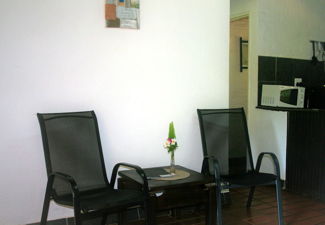 The Two-Sleeper Standard Chalet is a cozy chalet furnished with a double bed and an open-plan living area. There is a fully equipped kitchenette and a lounge corner with comfortable arm chairs and an en-suite bathroom. There is a private patio with braai area and fire-pit and free fire wood supplied daily. The chalet has a flat screen TV with DStv Hotel Bouquet.