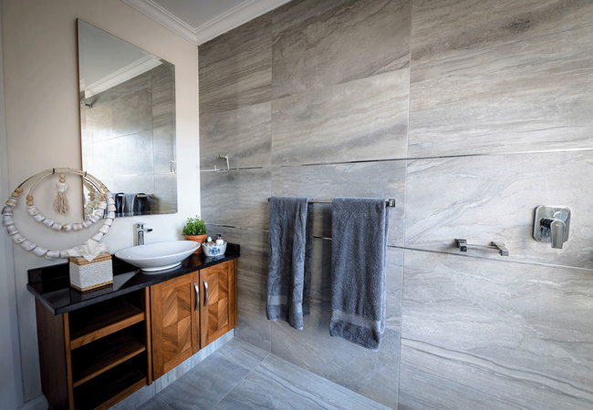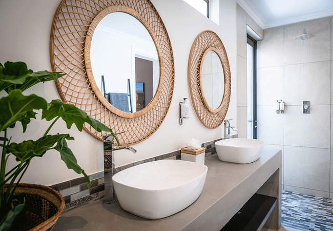 A hanging chair and leopard orchid suspends in the corkwood which overhangs the bar. Fully stocked with a variety of wines, beers, spirits and beverages to suit all tastes. If you wish to order something specific or a particular celebratory champagne, let us know prior to arrival in your booking notes. We also ask if guests have any preferences for drinks and snacks in their in-room mini bar.