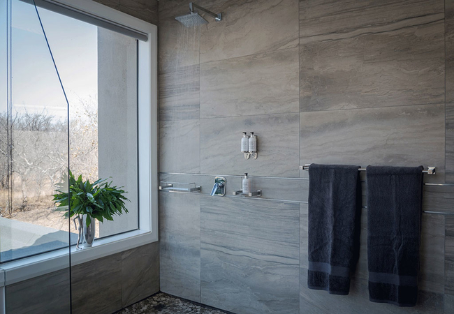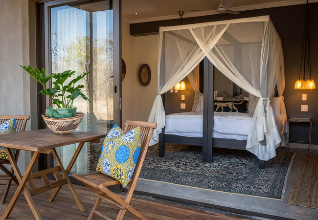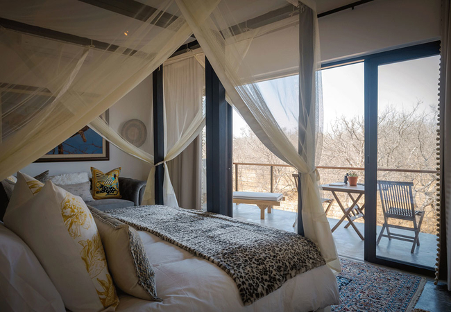 Glamorous is the word that best describes this room which can be found elevated above the bush-veld and enjoys excellent views from the private deck. It comes with a king bed and the bathroom has a separate shower and bath. The suite is equipped with a bar fridge which can be stocked in advance on request, Wi-Fi and air conditioning.
