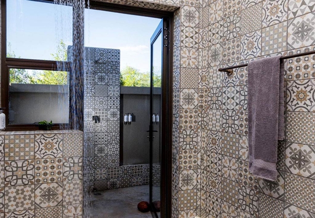 Overlooking the garden grounds and surrounding bush, Nyala are often seen from this deck quenching their thirst at the bird baths or nibbling the tender new shoots. Located on ground level and adjacent to Honey Badger, this room is also attached to the main lodge but has two entrance points to ensure seclusion. The suite is furnished with a King-size extra length bed. The bathroom has an indoor rain shower which opens out onto a spacious outdoor rain shower which has an overhanging bush-willow. This room also boasts a built-in bathtub, toilet and basin. The suite is equipped with a bar fridge which can be stocked in advance on request, Wi-Fi and air conditioning. Nyala is for the lovers of luxury.