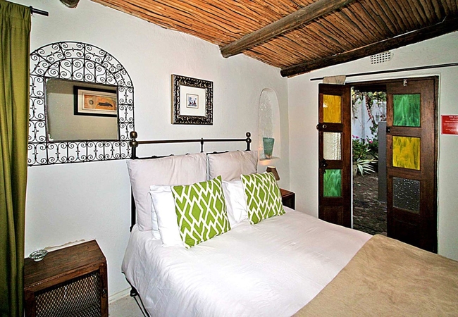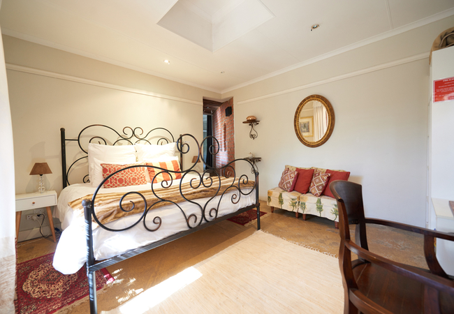 Ideal for a single person, this room is furnished with a double bed. The en-suite bathroom is fitted with a shower, toilet and basin. The room is equipped with a TV with DSTV, heating and electric blanket for heating. Wi-Fi is available. Hearty home cooked breakfast included. Leads out to central garden courtyard.