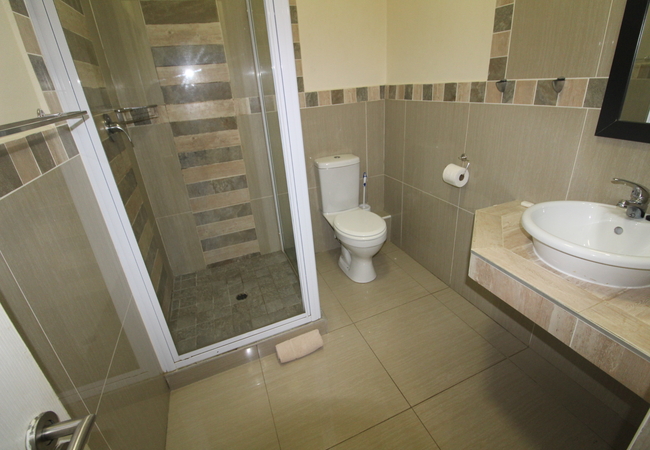 The main bedroom bedroom is furnished with a double bed and the second and third bedrooms are furnished with two single beds each. There is a sleeper couch in the lounge area for children under 12 years only. Each bathroom is fitted with a shower, bath, toilet and basin.