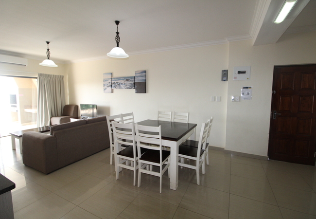 The kitchen is fully equipped for self-catering and the lounge area features pre-paid air-conditioning that works with tokens at R50 a token and the tokens are not refundable.The lounge and main bedroom lead out to the large balcony with built-in braai facilities.