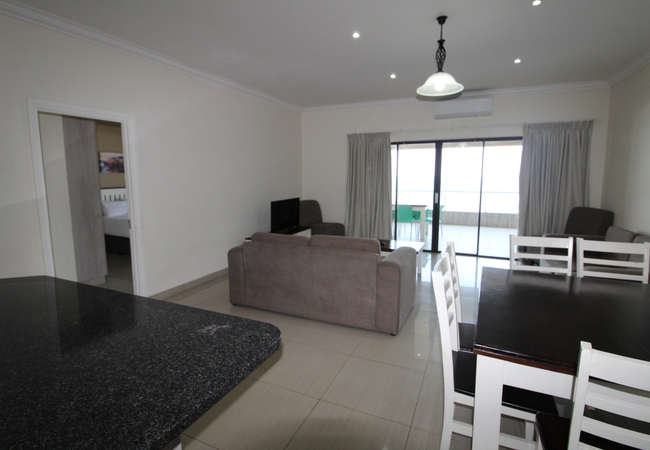 The kitchen is fully equipped for self-catering and the lounge area features pre-paid air-conditioning that works with tokens at R50 a token and the tokens are not refundable.The lounge and main bedroom lead out to the large balcony with built-in braai facilities.