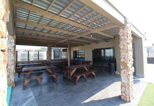 The kitchen is fully equipped for self-catering and the lounge area features pre-paid air-conditioning that works with tokens at R50 a token and the tokens are not refundable.The lounge and main bedroom lead out to the large balcony with built-in braai facilities.