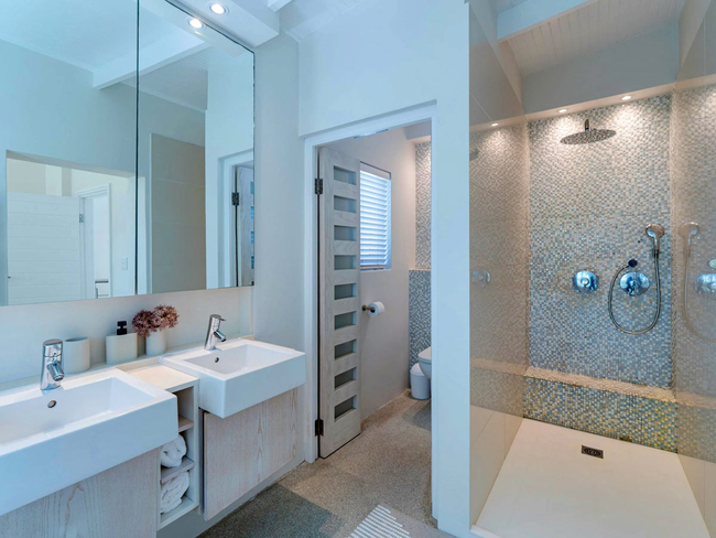 The second bedroom also includes a king-size bed and an en-suite bathroom with a shower. The remaining two bedrooms are each furnished with king-size beds and share a bathroom fitted with a shower, providing ample space and comfort for families or groups.
